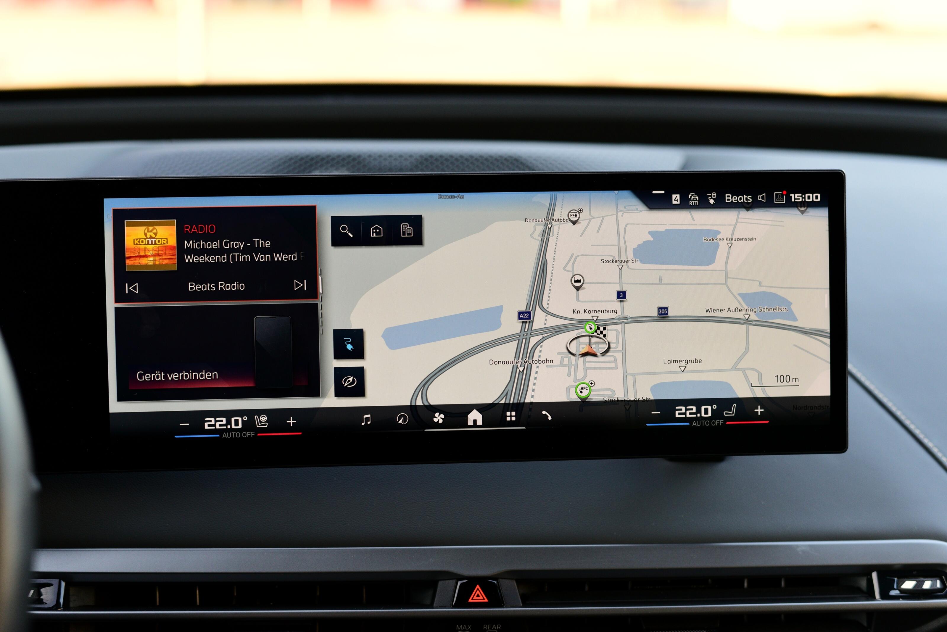 Das Raumgefühl – mit dem geschwungenen Armaturenbrett und der schieren Innenraumgröße – lädt zum Verweilen ein. Wenngleich mir das mit Stoff ausstaffierte Interieur des iX xDrive40-Testwagens von 2022 noch mehr zusagt. Dazu das grandios klingende Bowers & Wilkins BMW Diamond Surround Sound System mit 30 Lautsprechern und Excitern in den Vordersitzen.
