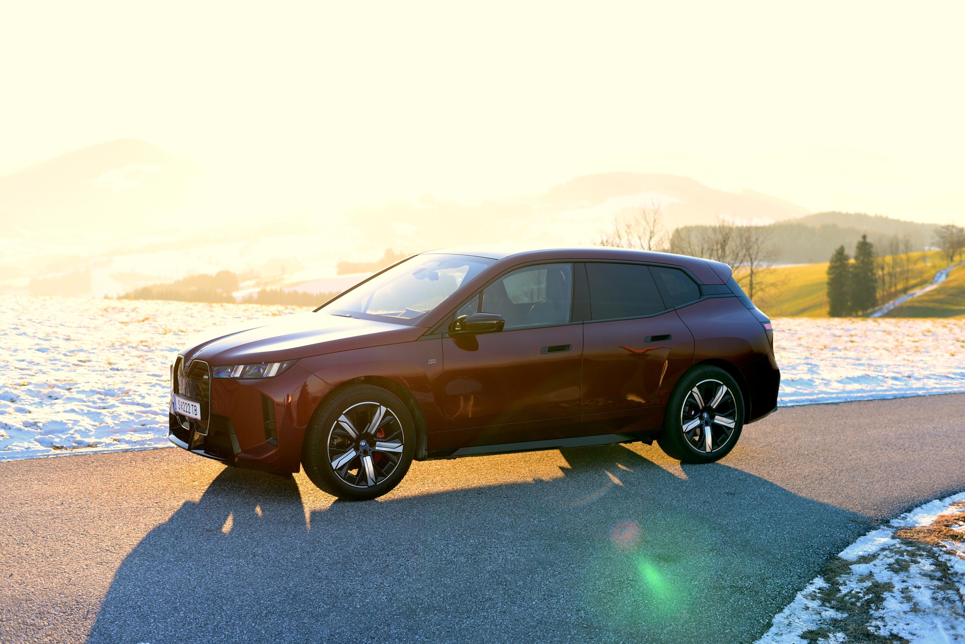 Es sind oftmals genau die Dinge, die am meisten Spaß machen, die leider wenig sinnvoll sind. Während andere Varianten mit hervorragenden WLTP-Reichweiten von bis zu 701 km (iX xDrive60) um die Ecke fahren, glänzt iX M70 xDrive mit 659 PS, 1.100 Nm Drehmoment und flinken 3,8 s/0–100 km/h. Brutal für ein 2,6 Tonnen SAV (Sports Activity Vehicle) mit 4,97 Meter Außenlänge und 1,97 Meter Breite.