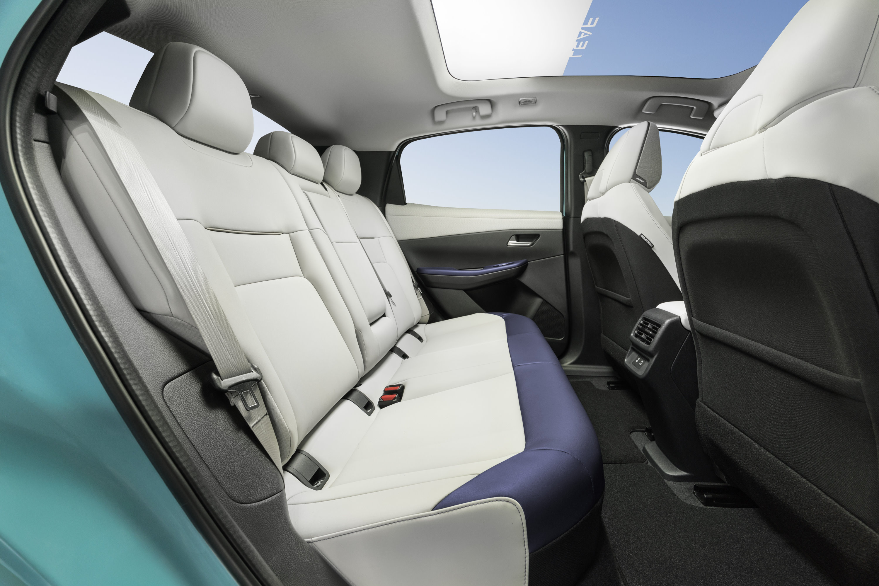 In der ersten Reihe geht es richtig luftig zu, auch dank des flachen Bodens und der offenen Gestaltung der Mittelkonsole. Das dimmbare Glasdach gibt es in den höheren Ausstattungslevels serienmäßig. Dieses hält 99,6 Prozent der Infrarot- und 99,5 Prozent der UV-Strahlung ab. Der Innenraum überhitzt also nicht, und zudem spart die 9-segmentige Dimmfunktion sieben Kilogramm gegenüber einem mechanischen Rollo ein.