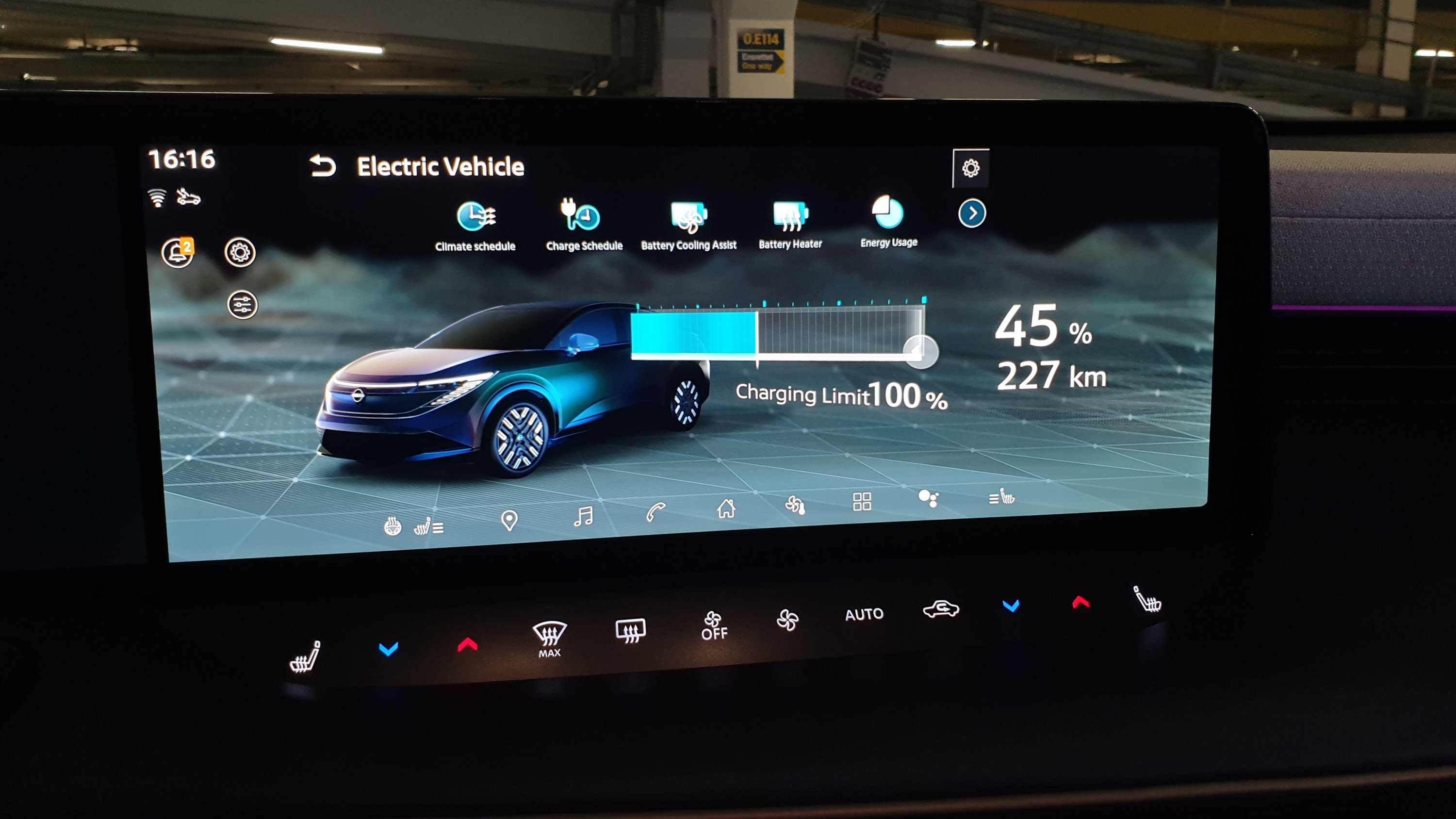 Das L im LEAF der dritten Generation könnte jedoch auch für „leider“ stehen, denn leider ist der Stromer bei der Ladedauer alles andere als „leading“. 35 Minuten für den Ladevorgang von 10 auf 80 Prozent sind ehrlich gesagt Schnee von gestern. Zwar erfahre ich beim Abendessen, dass im Idealfall (wenn die Batterie 25 °C hat und die Klimaanlage nicht aktiv ist) auch 30 Minuten möglich sind, doch das bleibt kein Vorzeigewert. Der VW ID.3 (79 kWh) ist mit 26 Minuten angegeben. Die Vortemperierung der Batterie geschieht auf Basis der Routenplanung automatisch, kann jedoch auch manuell via Infotainmentscreen aktiviert werden. Der Batterieheizer hat eine Leistung von rund 5 kW, die serienmäßige Wärmepumpe ebenso. Wechselstrom verarbeitet der am Motor platzierte On-Board-Charger serienmäßig mit 11 kW.
